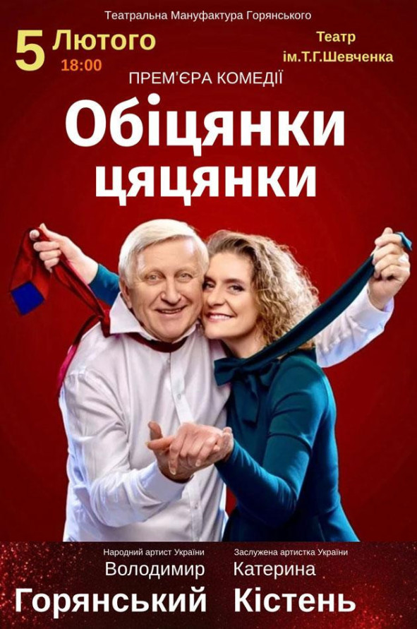 "Обіцянки цяцянки" - чудова комедія про шалену пристрасть та енергію подружньої пари, яка вирішила спробувати вільні відносини. Талановита, яскрава, неймовірно цікава гра про властивості та спокуси шлюбу.